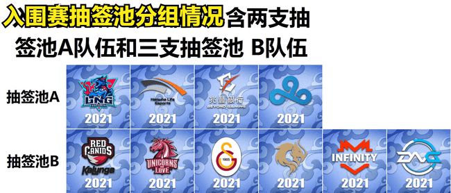 从LOL官方公布的各支队伍抽签池来看,入围赛阶段共有10支队伍,分别是隶属于抽签池A的LNG、HLE、C9和BYG。抽签池B则包括 RED、UOL、DFM、INF、PCE 和 GS。这10支队伍将被分成两组,但是需要注意的是,每组都将包含两支抽签池A队伍和三支抽签池B队伍。