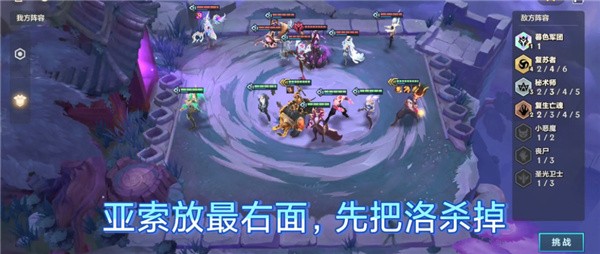 具体攻略:这关相对前两关有点难度,但是玩家还是可以无脑C亚索,其它的角色都是给他挡伤害的工具人,只要玩家的亚索可以尽情的输出就可以赢了。