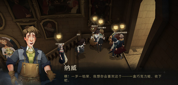 实际上会移动的楼梯应该也是哈利波特中霍格沃兹里比较著名的一个场景了!今天的蛙蛙在城堡主楼,来到城堡主楼一直向上走,在路尽头处转弯,即可看到纳威,点击即可获得巧克力蛙 !