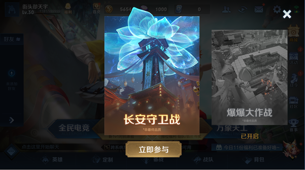 本次长安守卫战的入口可从主界面的活动玩法入口进入。进入活动选择页面后,选择“长安守卫战”玩法,立即参与即可开启玩法,守卫长安城