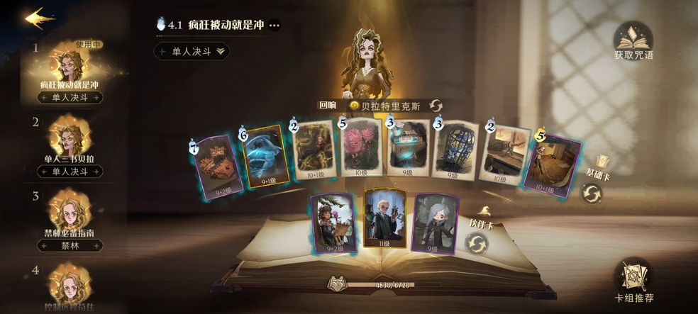 其实这套卡组一开始是从贝拉三书改过来的 也带过贝拉回想 优势在于卡珊德拉有加成 而且天胡起手直接出食死徒