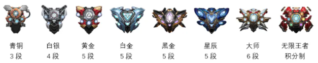 每个大段位分别有不同数量的小段位,对应如上图。进阶到大段位后,本赛季将不会降段,下赛季结算后,将根据本赛季的段位进行继承。