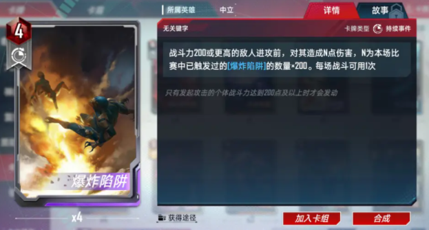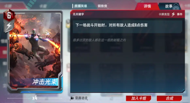 卡牌详情可以查看该卡牌的关键字、卡牌效果及背景故事等。