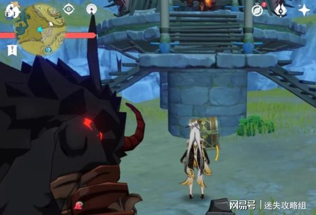 第六个:在一堆丘丘人的帐篷下面,打不打丘丘人无所谓(如果你走到帐篷最上面的小房间里,发现了一个被锁住的华丽宝箱,那么你把下面的丘丘人全部打败,就能获得一个华丽宝箱和两个普通宝箱)。