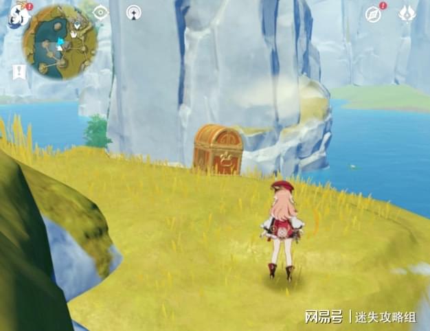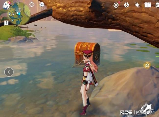 第三十三个:还是直接从奥藏山上飞过去,顺着河往前,会在岸边找到一个宝箱。