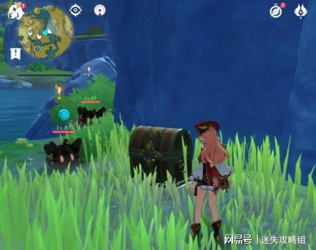 第三十一个:顺着山坡上去,可以在山坡尽头看到第三十一个。这有一群守着宝箱的盗宝团,如果你宝箱没拿过,那就打掉盗宝团拿一下。