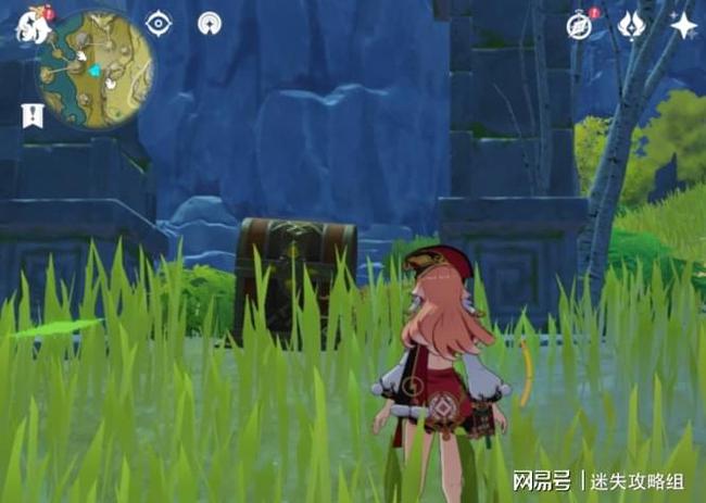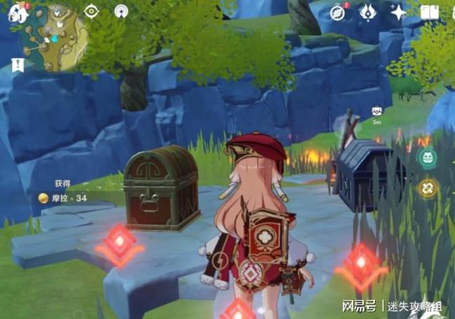 第四十个:从左上角小地图的位置往下飘,看到三个岩方碑之后,在岩方碑左边的石头上往上爬,就能看到最后一个宝箱了。