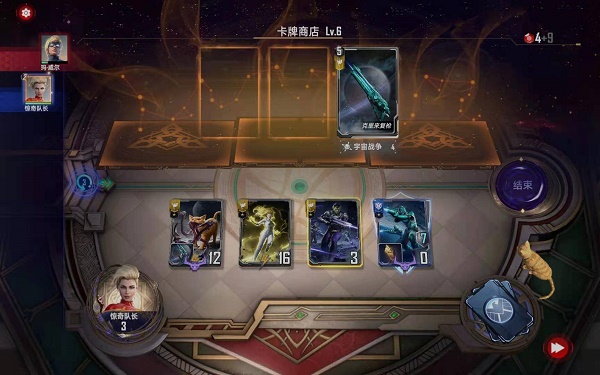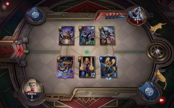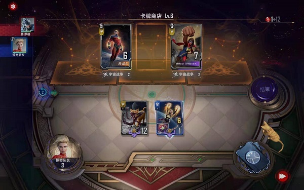 第四小节:购买能量操控事件卡还有星河唿唤技能都给玛威尔使用,购买克里冲锋持续时间卡,购买惊奇队长,并按照下图摆位: