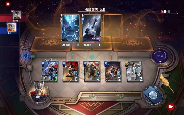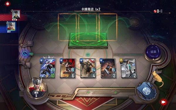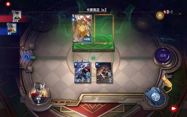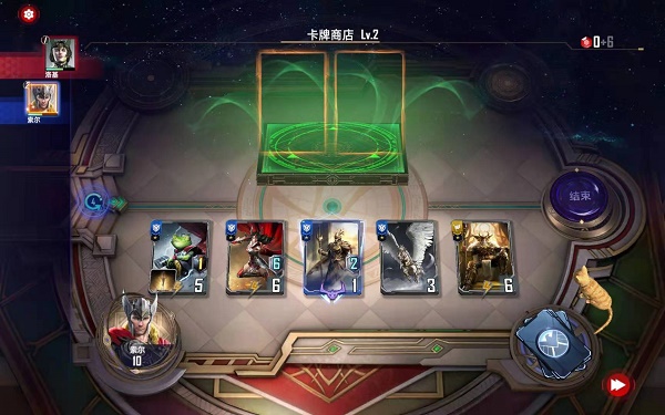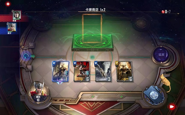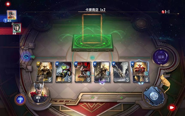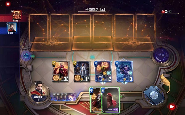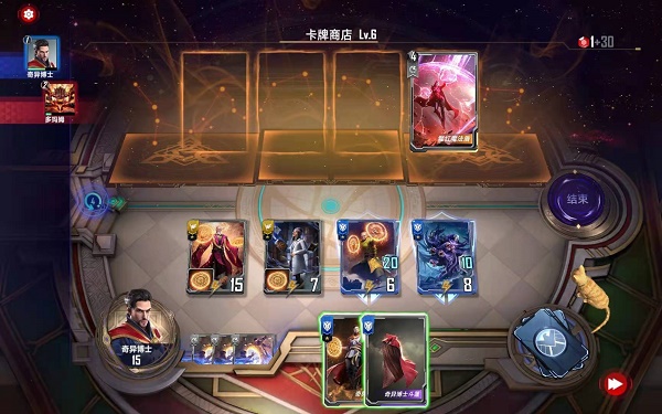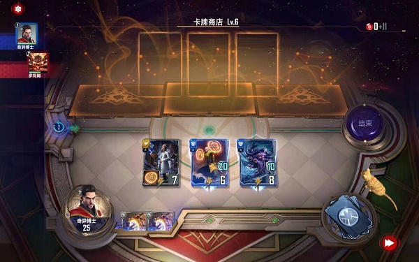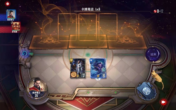 第三小节:购买奇异博士斗篷和奇异博士并放在手牌不打出,其他随从如下位置摆放: