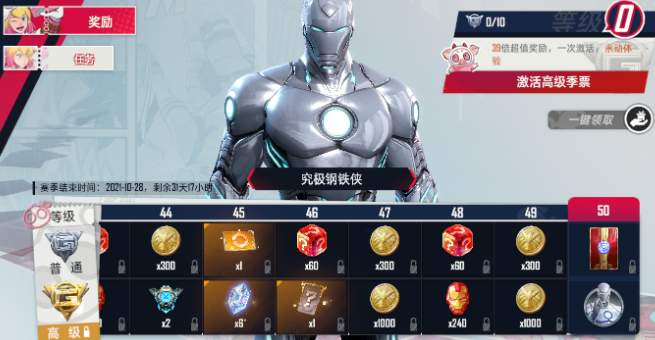 季票中除了包含金币材料等基础奖励之外,解锁高级季票还可以获得究极钢铁侠皮肤。