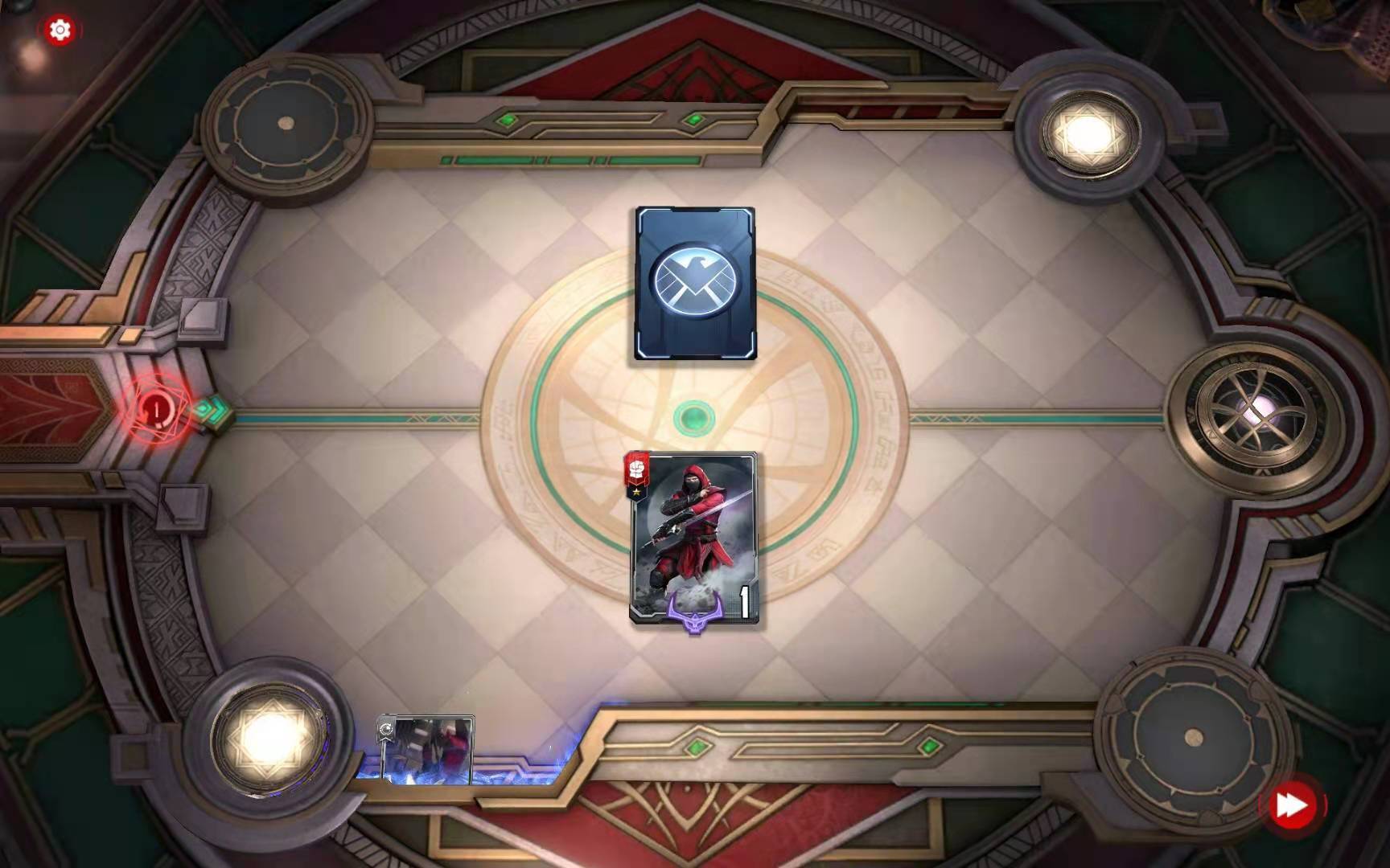 最后打出苏瑞给凯奇增加护甲,并按照下图摆放: