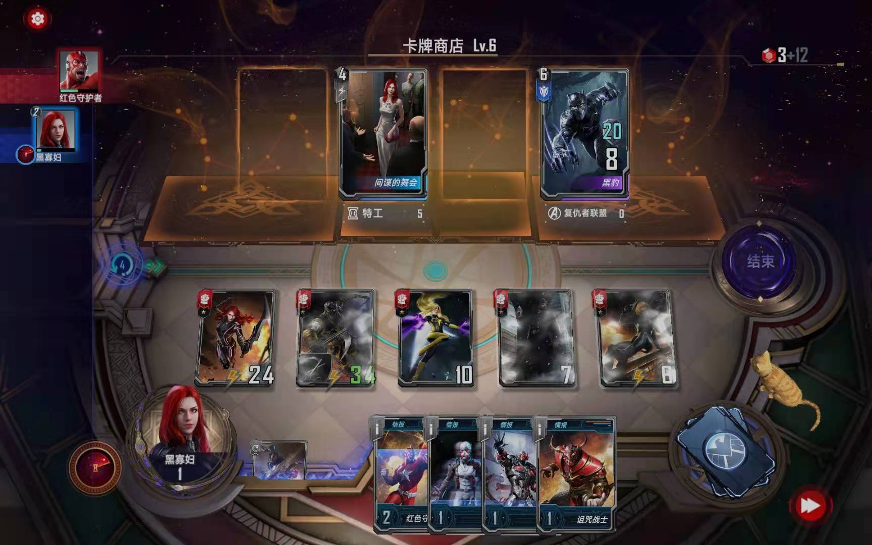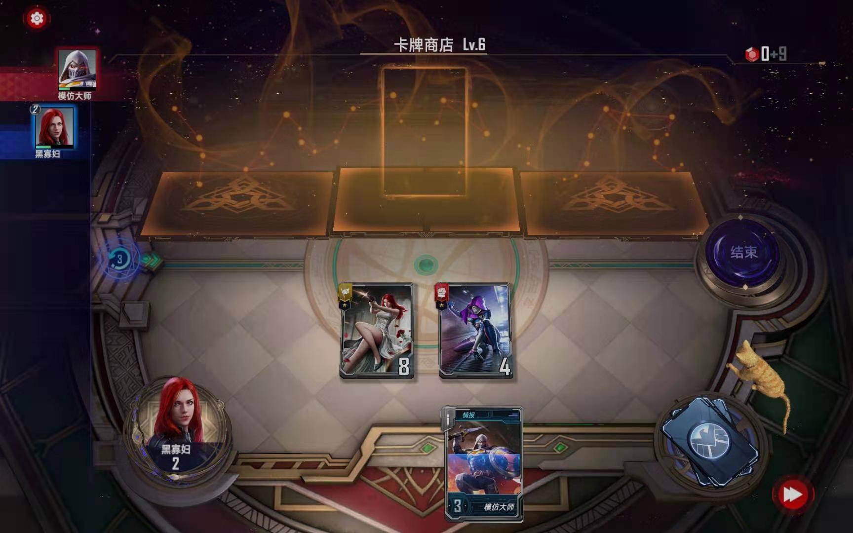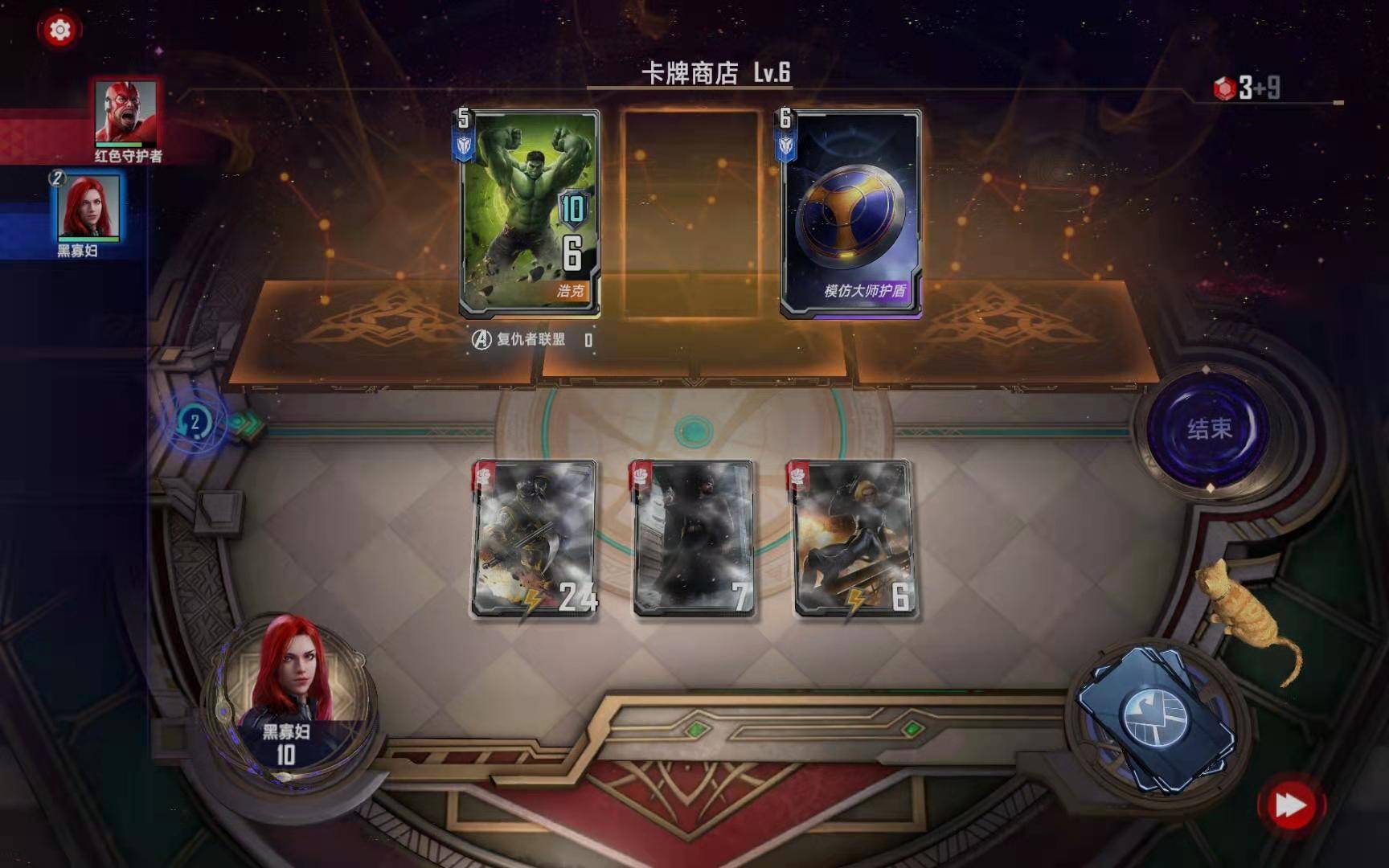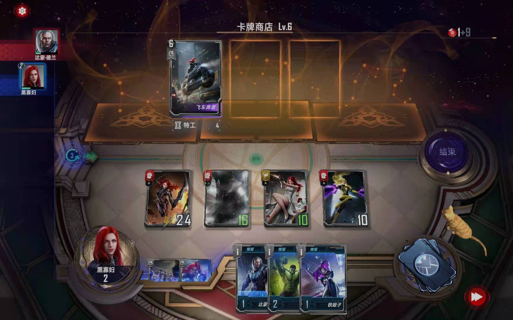 第三小节:购买黑寡妇(恐惧之源),购买暗星对“绿浩克”使用二星情报,按照下图摆放: