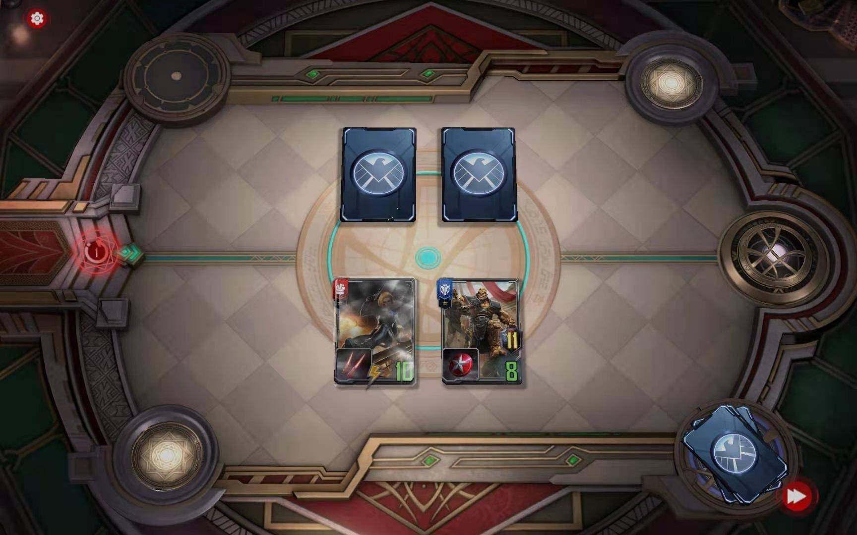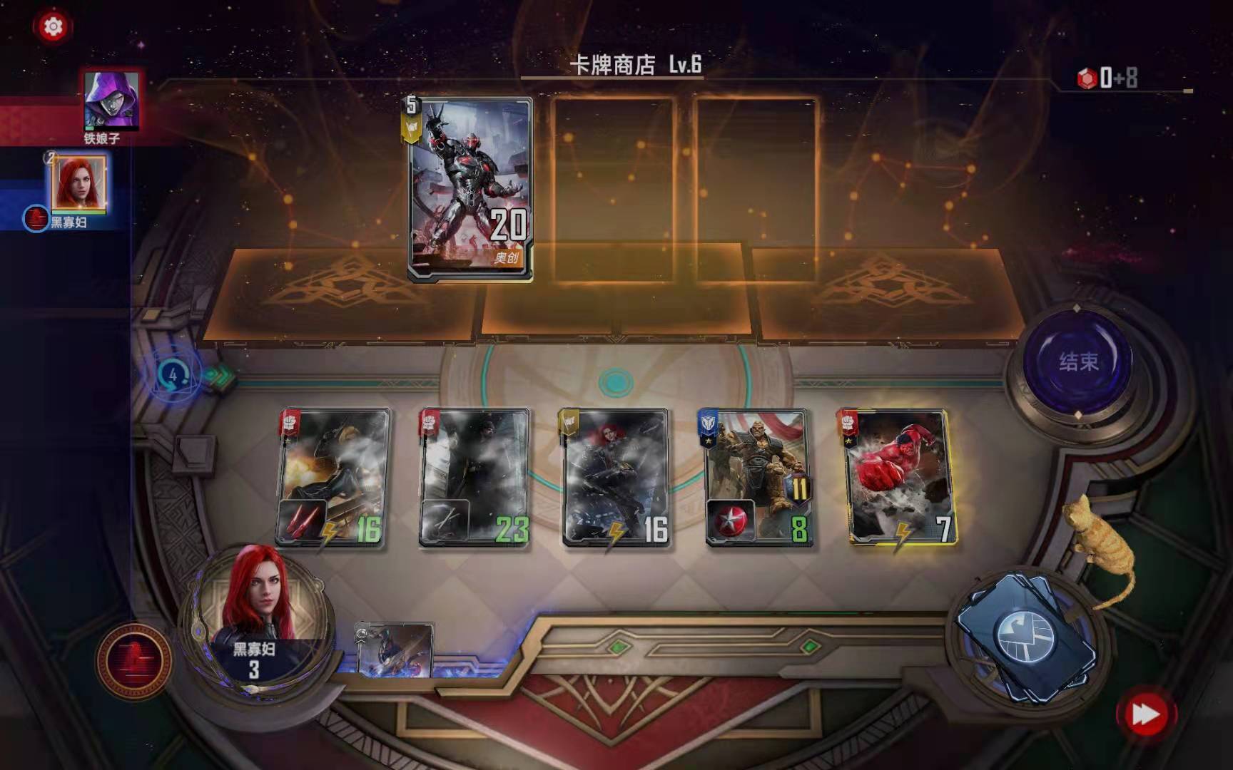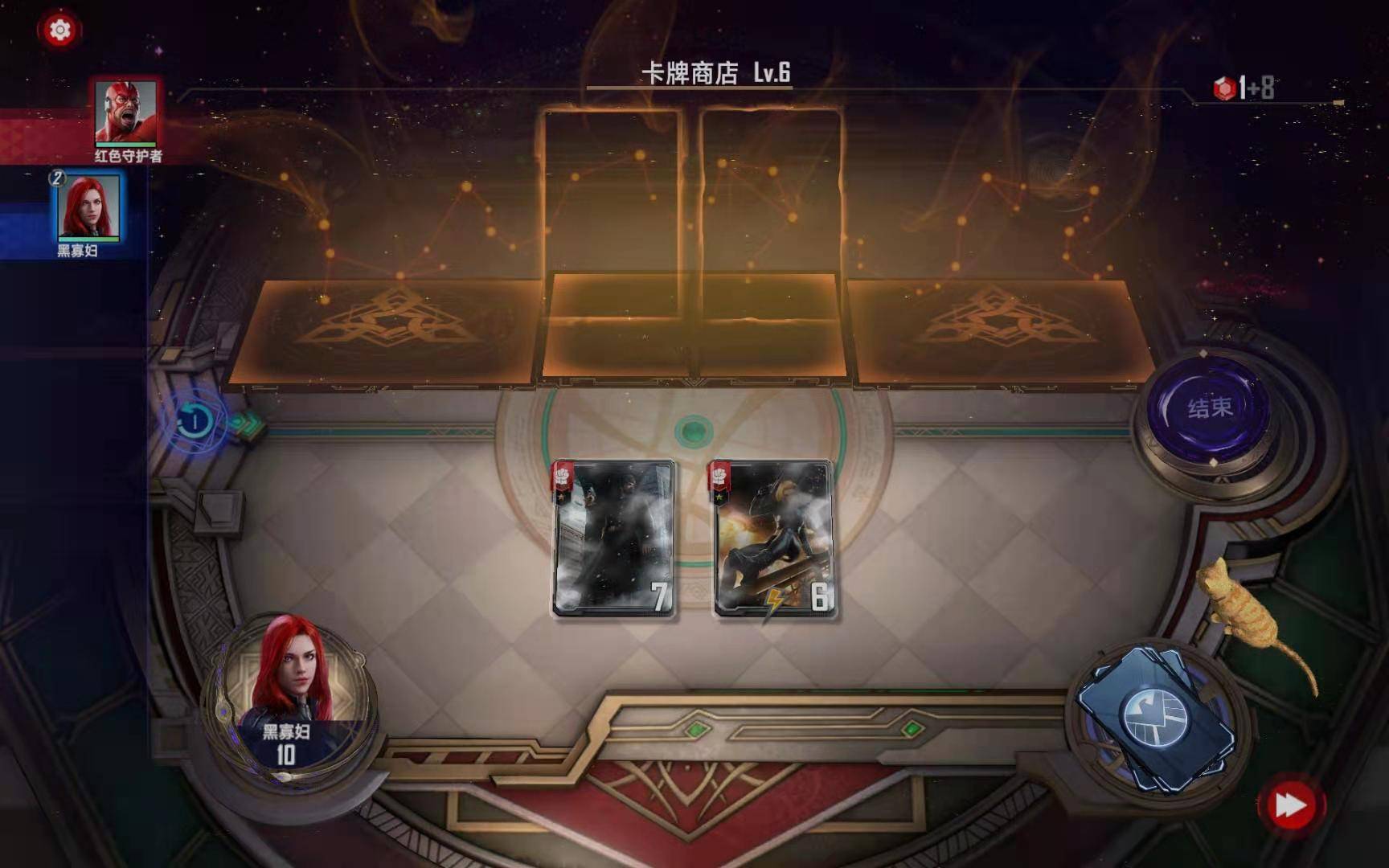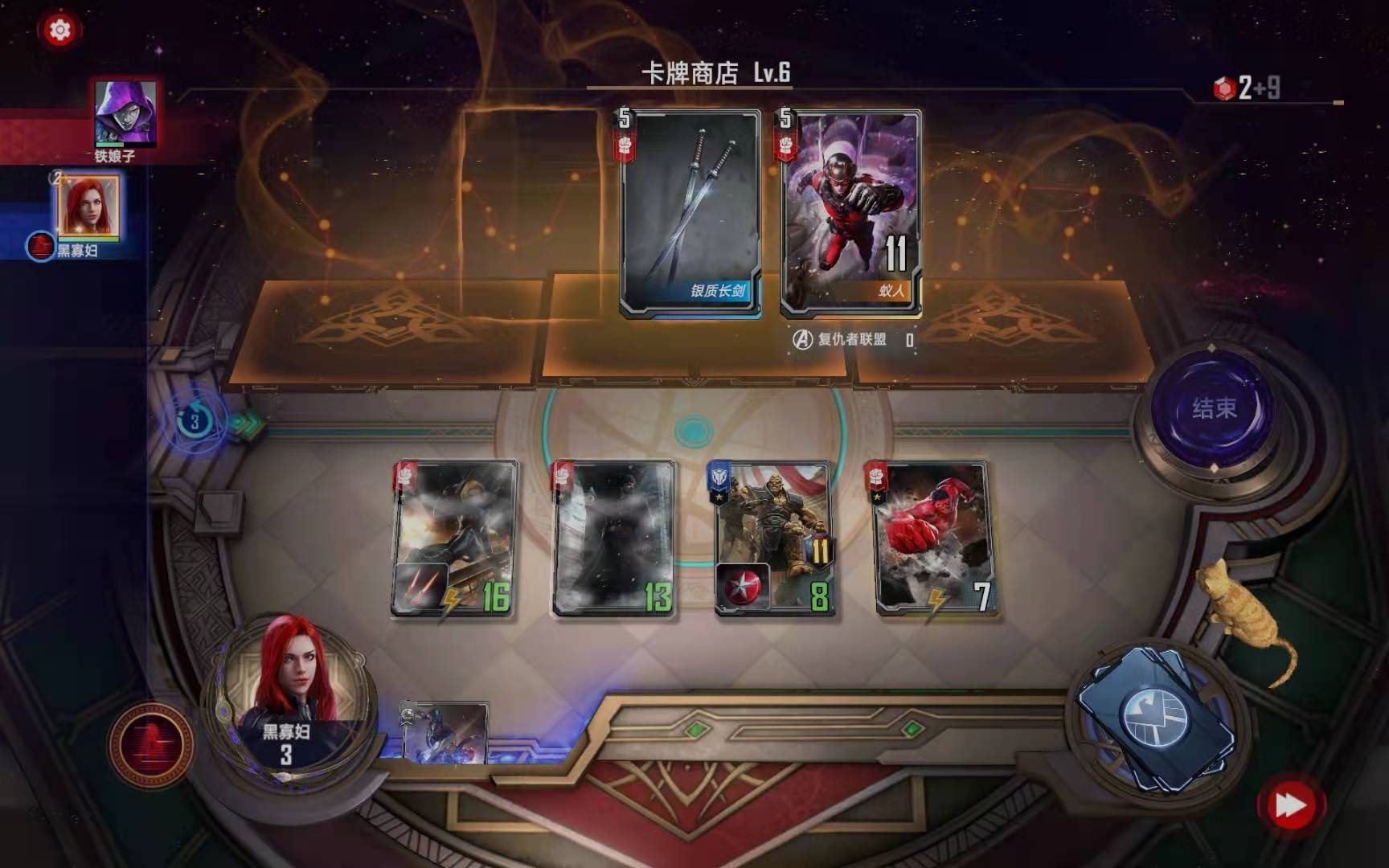 第三小节:购买黑寡妇(恐惧之源),购买暗星对“绿浩克”使用二星情报,按照下图摆放: