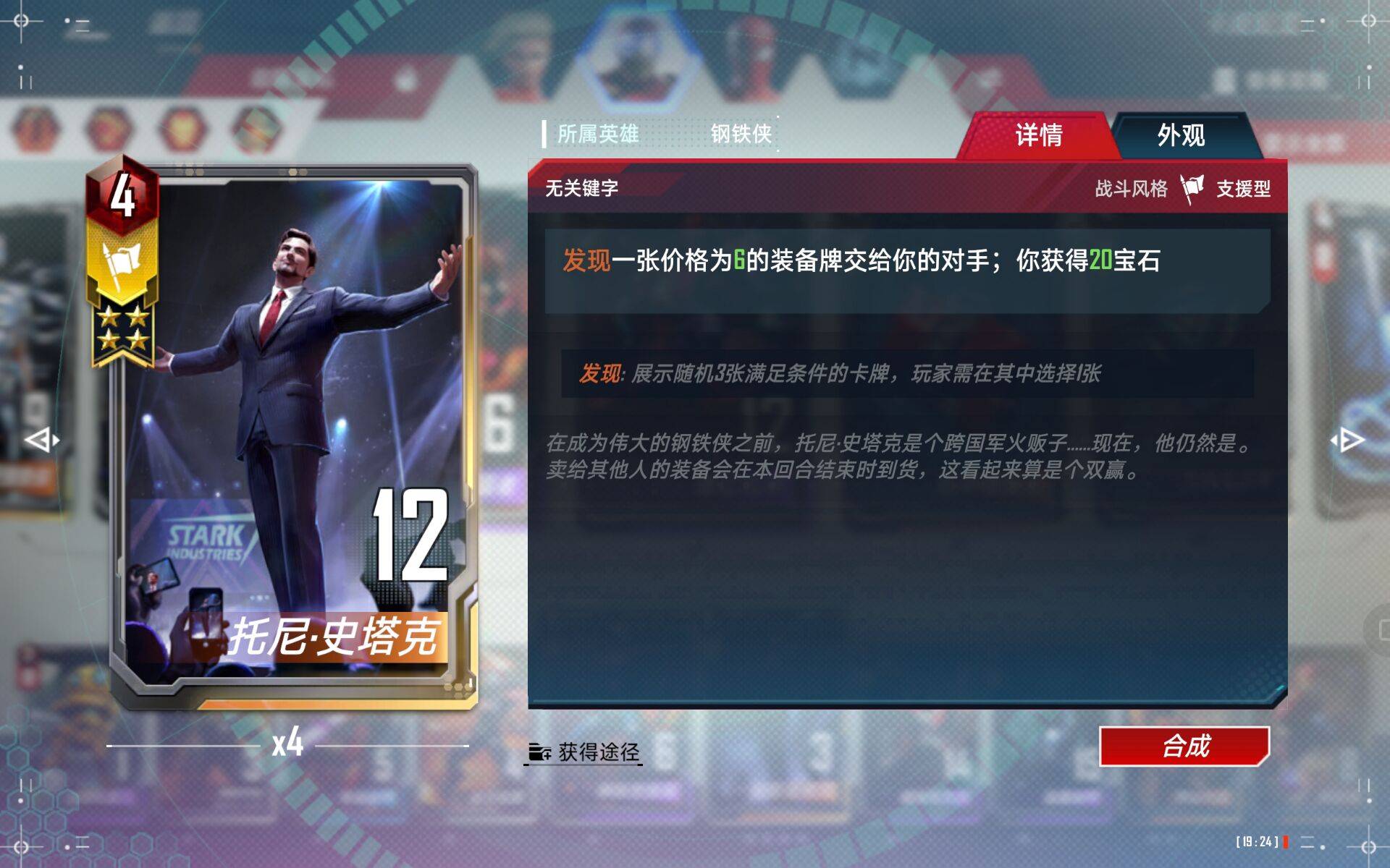 这个技能一般在有黄队关键牌的时候,比如惊奇女士、罗南、惊奇队长等关键牌在的时候使用,可以节约一张购买关键牌的宝石,其他价格被降为0的支援型卡牌可以买下来直接卖掉。每场比赛平均可以获益5个宝石左右。