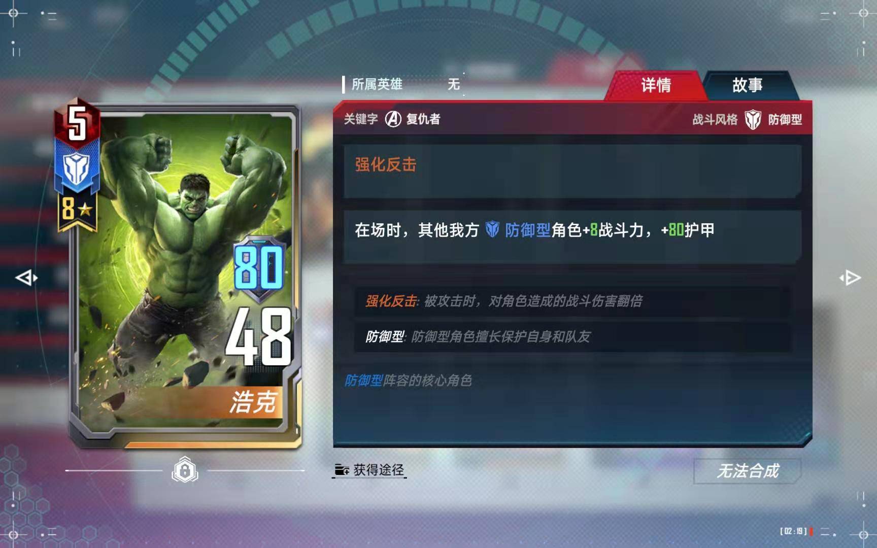 锁定卡池送的,复仇者三剑客之一,本队大部分都是蓝卡,绿浩克带来的收益是非常高的。