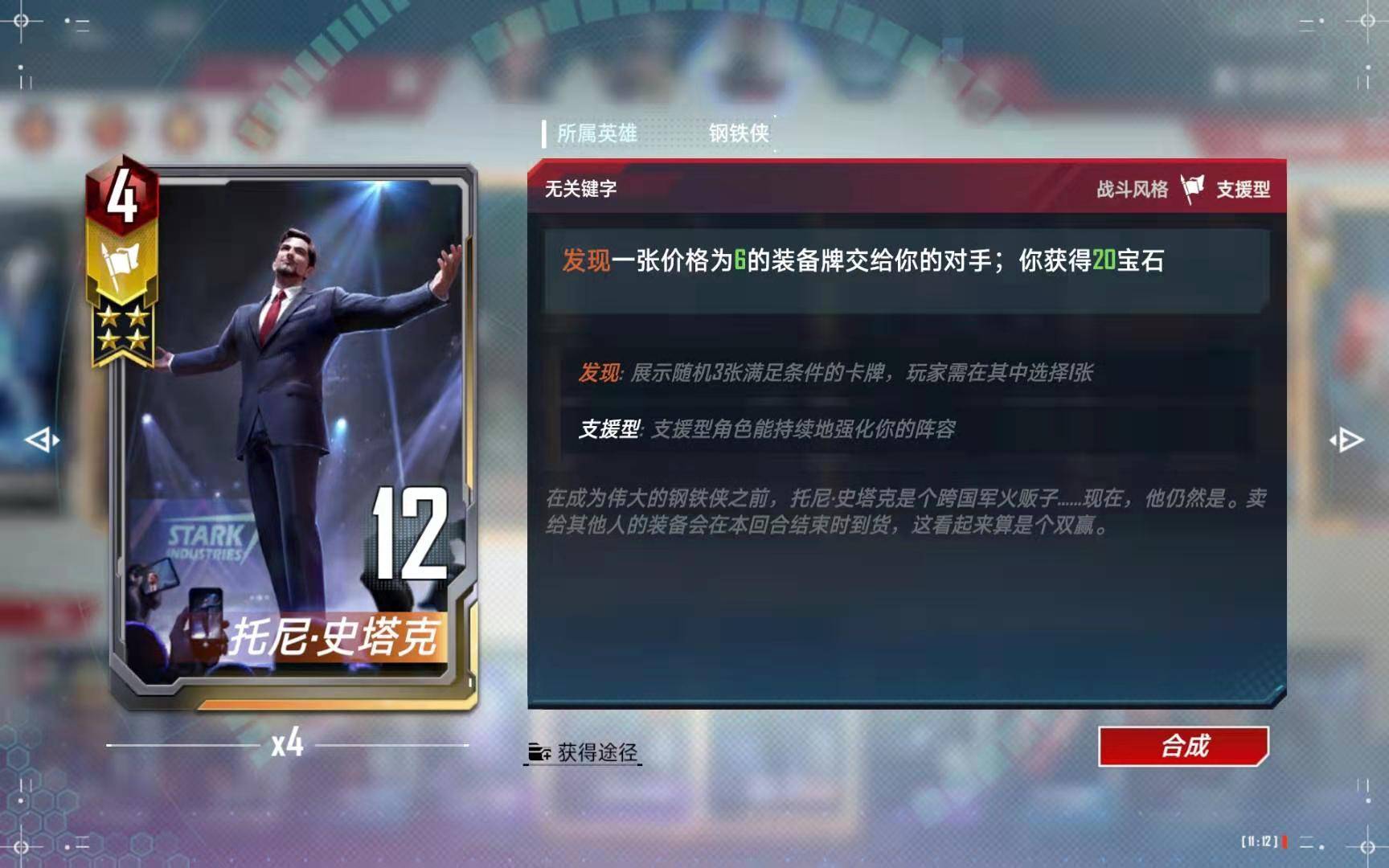 托尼这张卡是本游戏的神,在拥有四张托尼以前,你只是在体验游戏,拥有了四张托尼以后,才算是真正能玩这个游戏的大部分卡组了。唯一的难点在于,是否有打出四星托尼的能力和习惯。