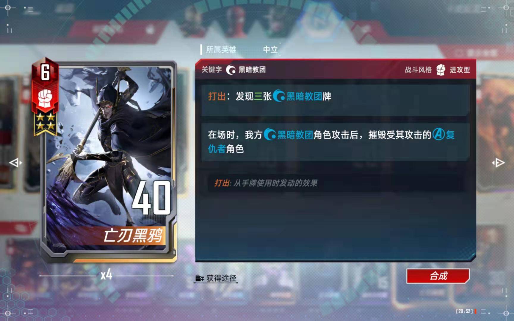 并肩越多越好,每天合作打一打,攒下尘,基本上每个月可以稳定获得一张并肩作战,大部分用钢铁侠辅助的卡组里,这张卡都是必须的检索牌。