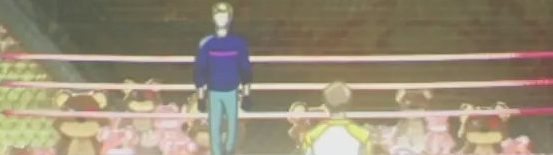 这里的铁门中间,还是MB标志。这一帧彩蛋很多,左右墙壁都有文字,最右边有几个选手身着某种队服,最明显的还是左下角一个男人的魔性笑容。这个人我一开始以为是brTT,毕竟胡子很抢眼,但是反复对比以后,我感觉他不是brTT,而是他的队友,paiN战队的上单ROBO。