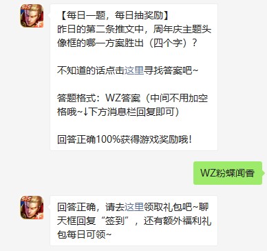 昨日的第二条推文中,周年庆主题头像框的哪一方案胜出(四个字)?