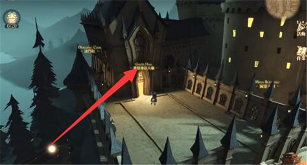 1.依旧点击右下方的城堡传送到城堡上空,进入霍格沃茨大厅
