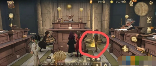 2. 对角巷古灵阁,走到最里面,正对大门的桌子右边的地上,点击光点即可