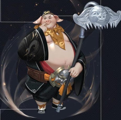 在英雄模型的设计上,这款皮肤尽最大程度还原了86版西游记剧中的猪八戒形象:无论是玄色衣帽,还是兵器九齿钉耙,亦或者英雄的语音台词,都可以说十分经典;
