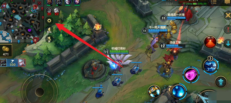 1、在对战过程中找到界面左上角的齿轮进入设置页面;