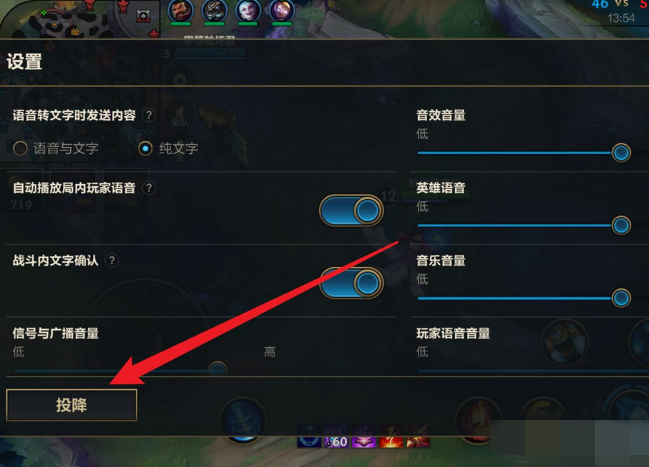 英雄联盟手游投降方法: