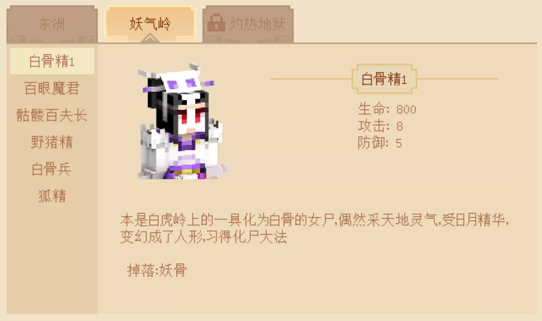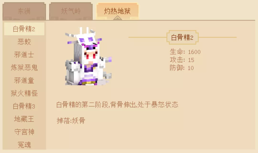 注意:击败这个阶段的白骨精,冒险家们会获得物品“妖骨”哦~