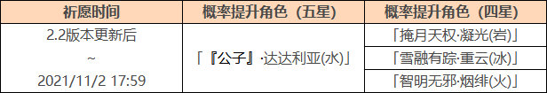 ●活动期间,限定五星角色「『公子』·达达利亚(水)」的祈愿获取概率将大幅提升!