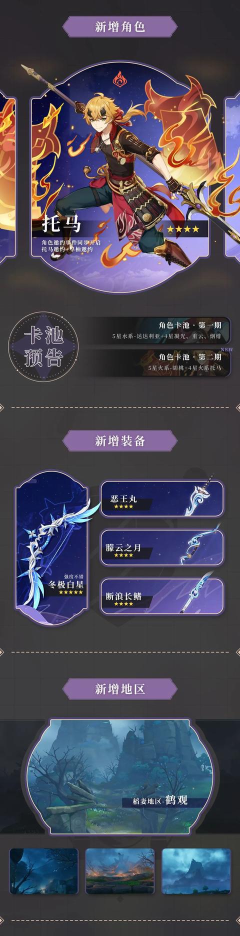 ※祈愿开启期间,还将开启相应的「且试身手」角色试用活动,旅行者可以使用包含试用角色的固定阵容进入指定的关卡进行体验,挑战成功后即可获得对应奖励!