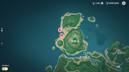 在最少的水钱箱点位上岸,并且周围没有沉船,或许只有这一个地方可以登上【鹤观】吧。
