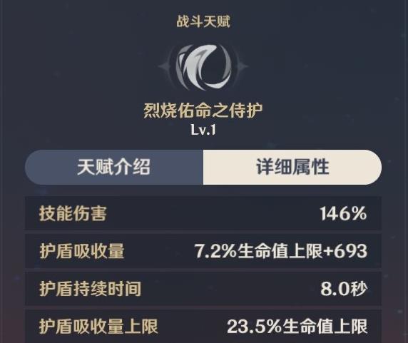 2、烈烧佑命护盾具有的特性:对火元素伤害有250%的吸收效果;护盾剩余的伤害吸收量在获取新的烈烧佑命护盾时将会叠加,并刷新持续时间;护盾的伤害吸收量至多不超过托马生命值上限的一定比例。