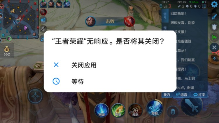 昨天很多玩家都在反应王者荣耀出现无响应的提示,打游戏的时候网络显示是绿的,但是会突然之间就失灵了,角色失控,屏幕无反应。然后过一会儿就会弹出,程序无响应。点击等待可以继续打,但是还是会时不时就出现失控!
