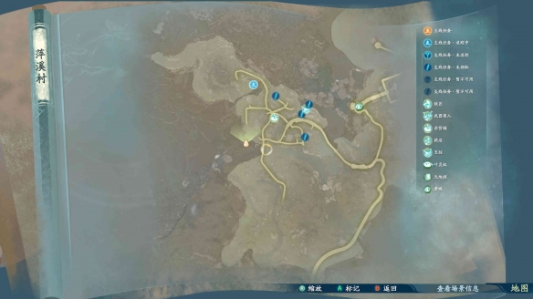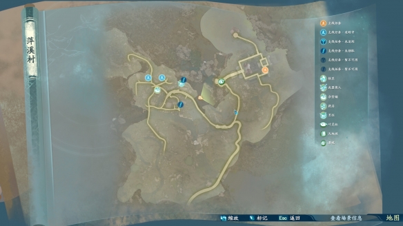 进入萍溪村,可以在这里先完成支线以及搜刮下道具。另外,可以利用地图标记功能,标记NPC、地点的位置这样便于定位寻找。