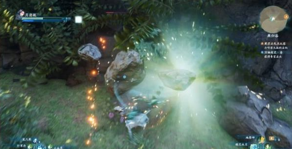 接着到后方的谷中击败扮成石块的顽石怪获得长满青苔的石头。注意这只顽石怪的血量伤害较高。
