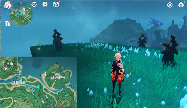 这一座应该是最初第一次遇到阿瑠的那座山,根据壁画提示,宝藏雷灵应该在这个观测点位的另外一个面……等会过去就能看到雷灵了,没关系!