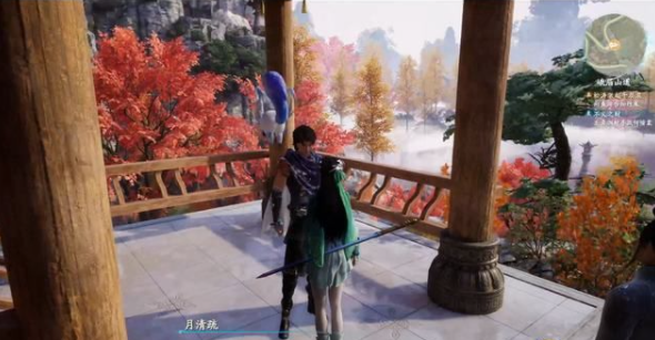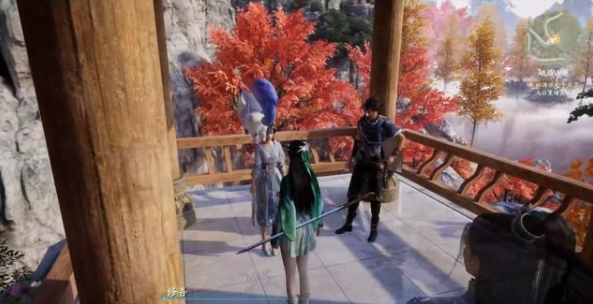 进入仙霞派后,先在山腰处的亭子里休息一会儿,与众人交谈。