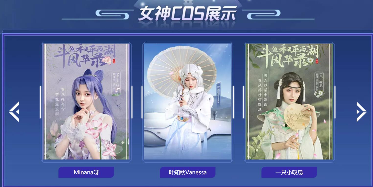斗鱼和官方还在14日晚上做了一个提前曝光梦寻西湖系列皮肤表演赛,就是让和平精英各大主播提前曝光皮肤的造型和在游戏中的效果,其中叶知秋,minan,一只小叹息还每人cos一个皮肤的造型,看到minana和叶知秋的造型网友瞬间破防,还弹幕表示想让minan女神穿着这个cos在直播间现场来一次热舞;