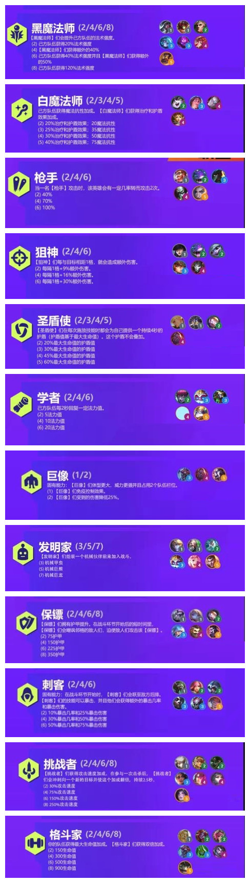 S6赛季共有羁绊27大类,种族羁绊15类,职业羁绊12类。