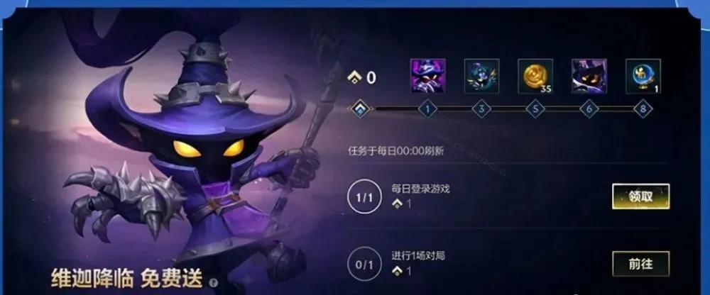 这个活动比较简单,完成每日登录,对局任务就能获得新上线的英雄邪恶小法师·维伽,还有头像,魄罗,小法的姿态宝箱等奖励。