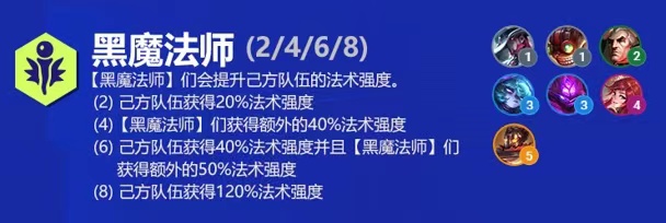 6个英雄:己方队伍获得40%法术强度并且黑魔法师们获得额外的50%法术强度。