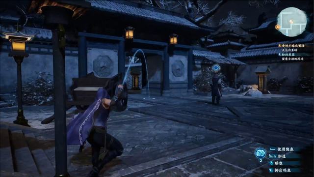 这里需控制桑游进行一段潜入,瞄准后将鸣蛊扔到守卫附近,引开他们的注意。