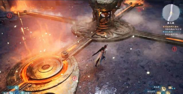 沿着栈道前进,来到黎火殿,这里将会进行一段解谜。