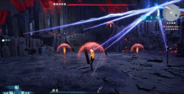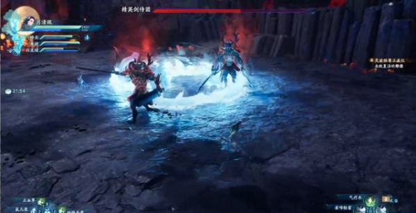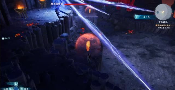 往前走一段路,会遇到BOSS精英剑侍团,一阶段是一个解谜。