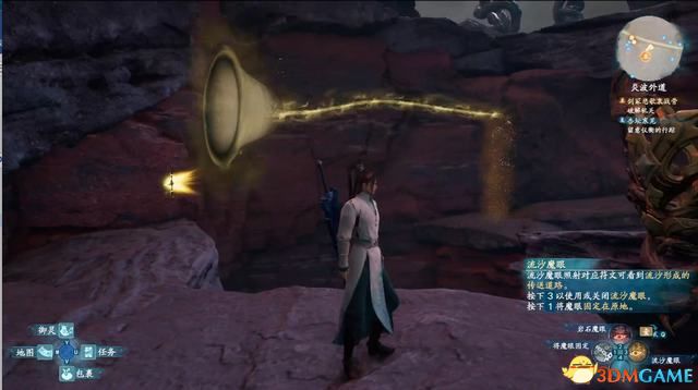 跳到对面,拿取流沙魔眼,用同样的方法固定流沙标记,生成一条通路。