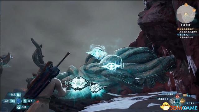 按2召出岩石魔眼,瞄准红色的标记,等红色标记亮起后,按1固定。