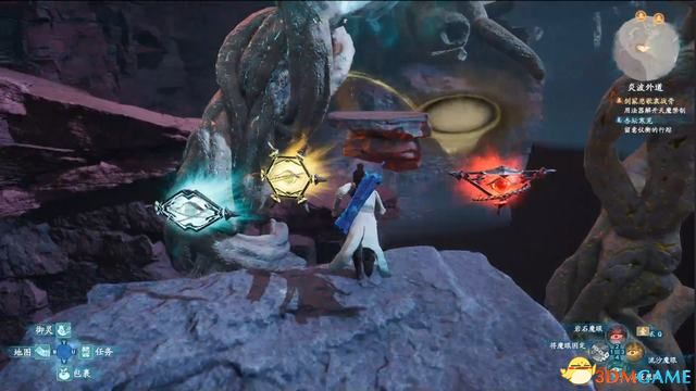 首先使用岩石魔眼召唤台阶跳到对面。
