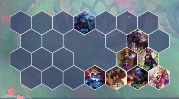 由于小法本身没有约德尔羁绊(他的羁绊是单独的约德尔大王),加上阵容要在5-6人口追所有约德尔人的三星,人口很紧张,没有人能先穿小法装备打工,所以我们到后期选秀再补小法装备。