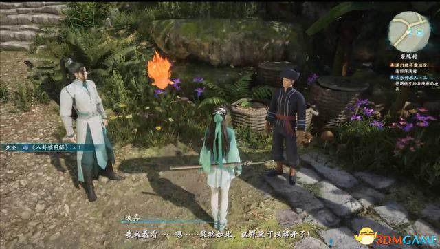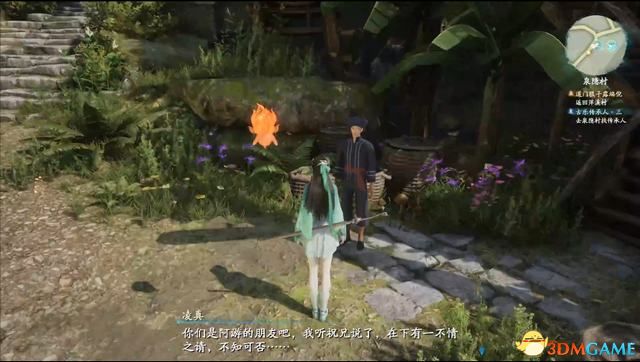 前往泉隐村与凌真对话,他认出我们是桑游的朋友,有一事相求。